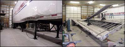 Our experienced shop technicians can handle everything from complete rebuilds to minor repairs. The following are just a few of a long list of services we can provide to our customers. Frame straightening, total rebuilds, brake jobs, axle alignment, off the road emergency repairs, electrical, hydraulic repairs, roof repairs, ABS brake system repairs, roll-up door repair, box truck repair, annual DOT inspections, and the areas only shop that can re-arch flatbeds!